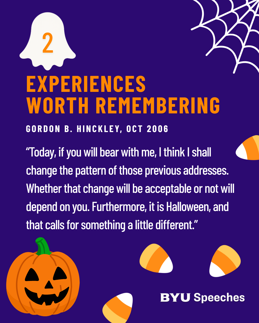 So as the days grow shorter and shadows lengthen, may we remember that the gospel brings light to every darkened path. These Halloween BYU Speeches remind us that there’s no need to fear—not when Christ is part of the story.