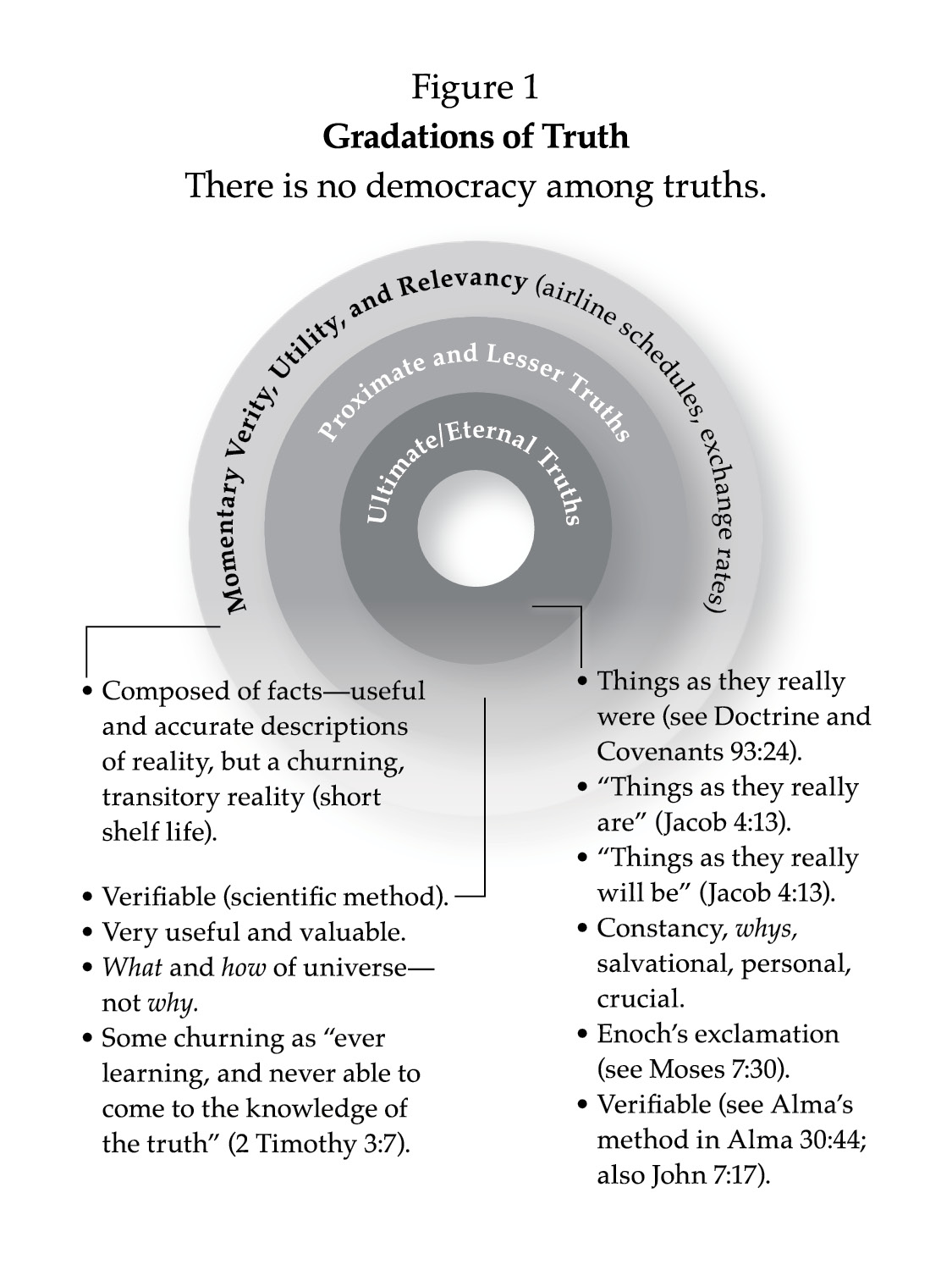 Since truth is highly and rightly valued in the learning process, please allow me to present a few concepts, along with an accompanying illustration (figure 1), about the gradations of truth. These points may seem obvious, but it is so easy to look “beyond the mark.”6