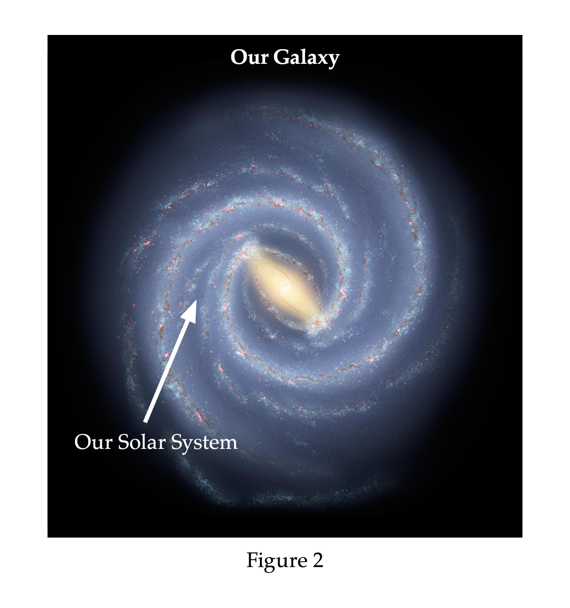 Figure 2 shows the placement of our comparatively tiny solar system in the suburbs of the Milky Way galaxy.