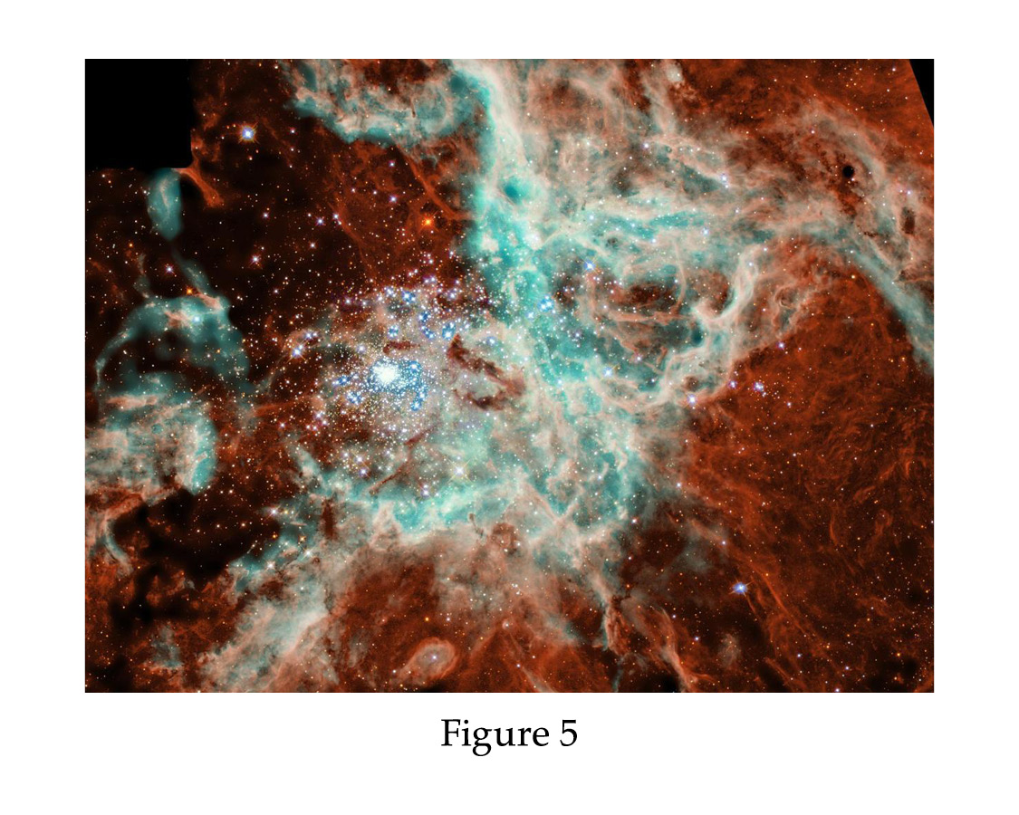 Figure 5 is the Doradus Nebula. If it were as close to us as is very distant Orion, it would cover one-fourth of the night sky. Think of the words about how God’s creations “cannot be numbered unto man; but they are numbered unto [Him].”33